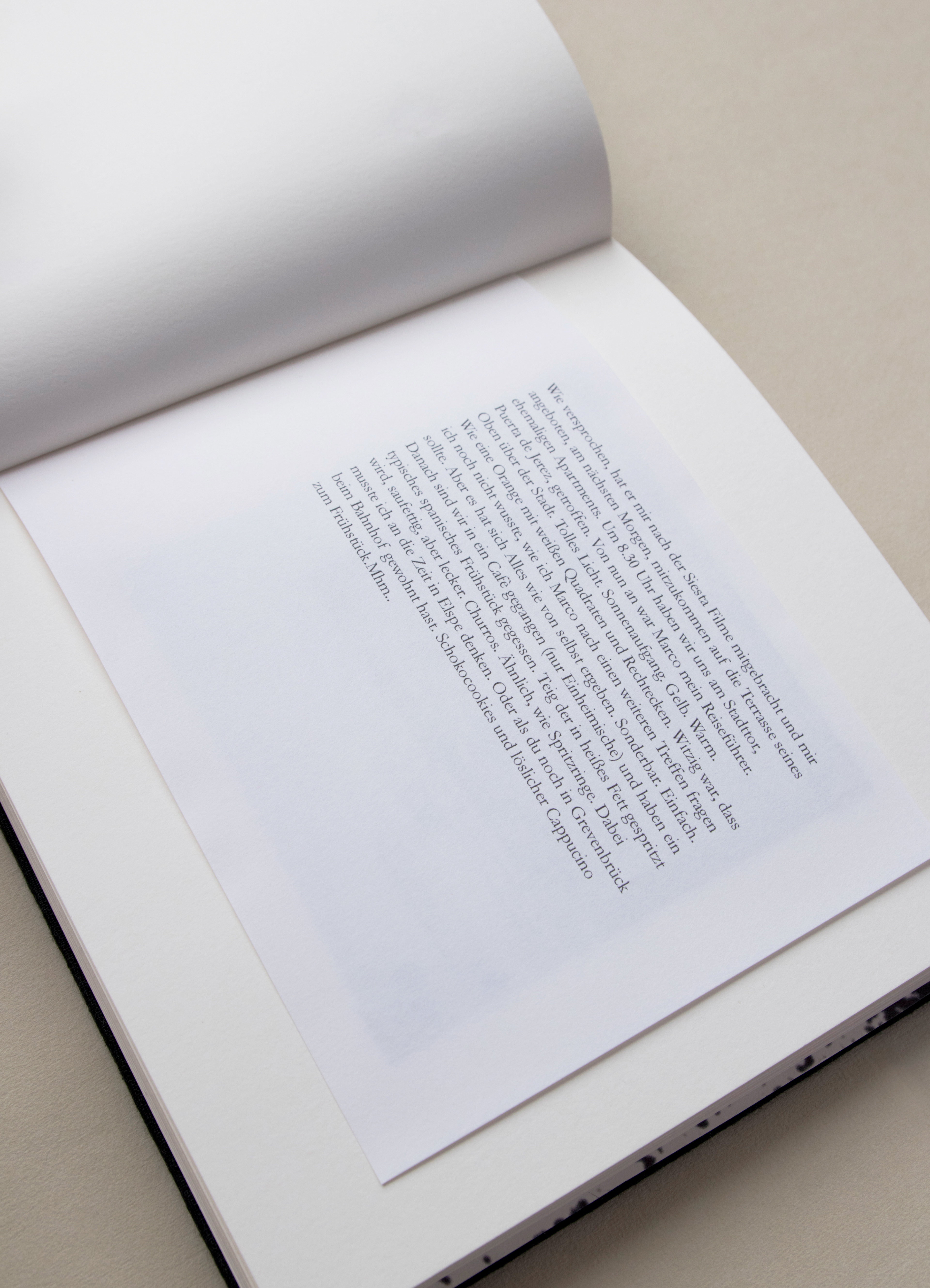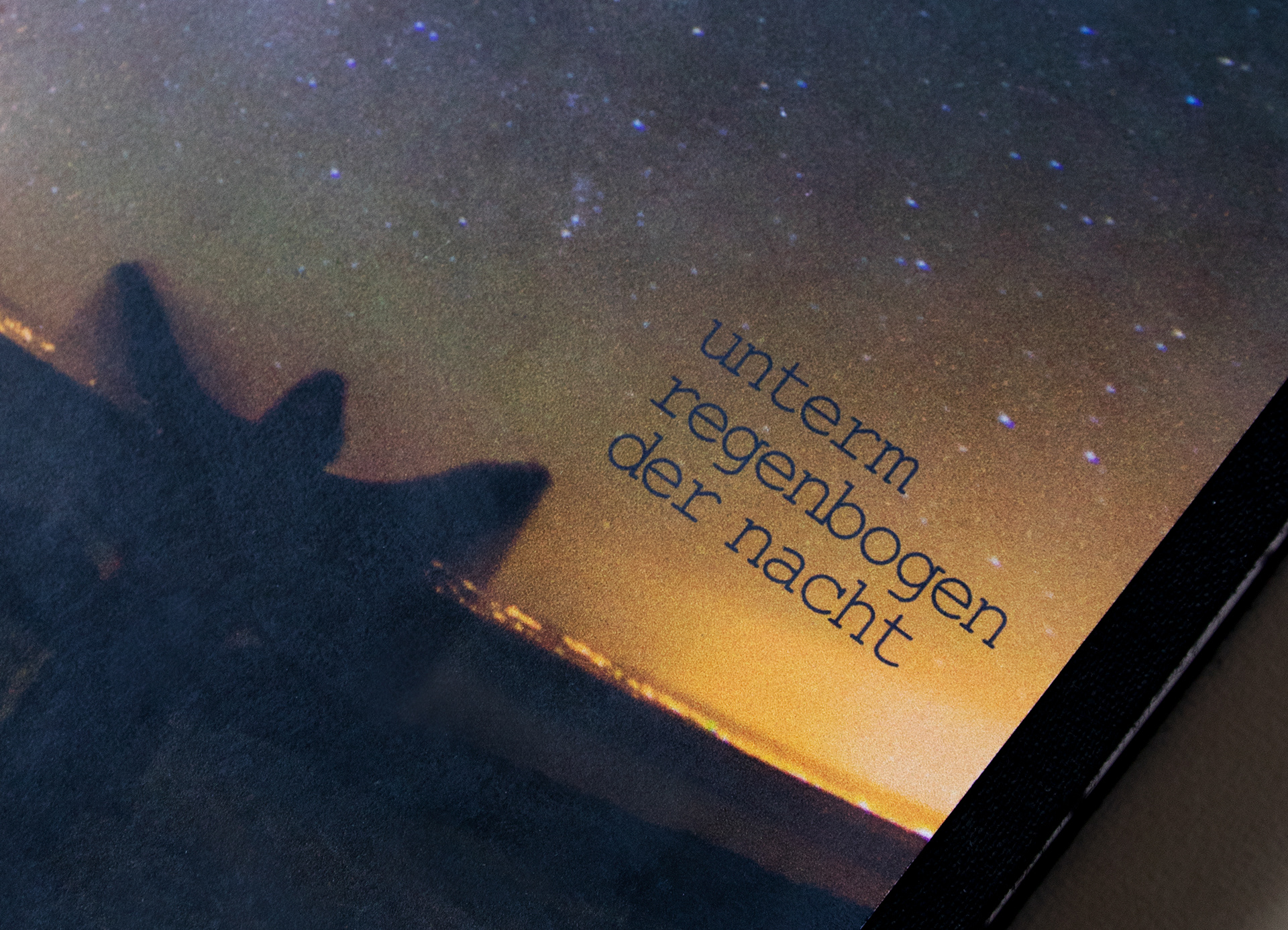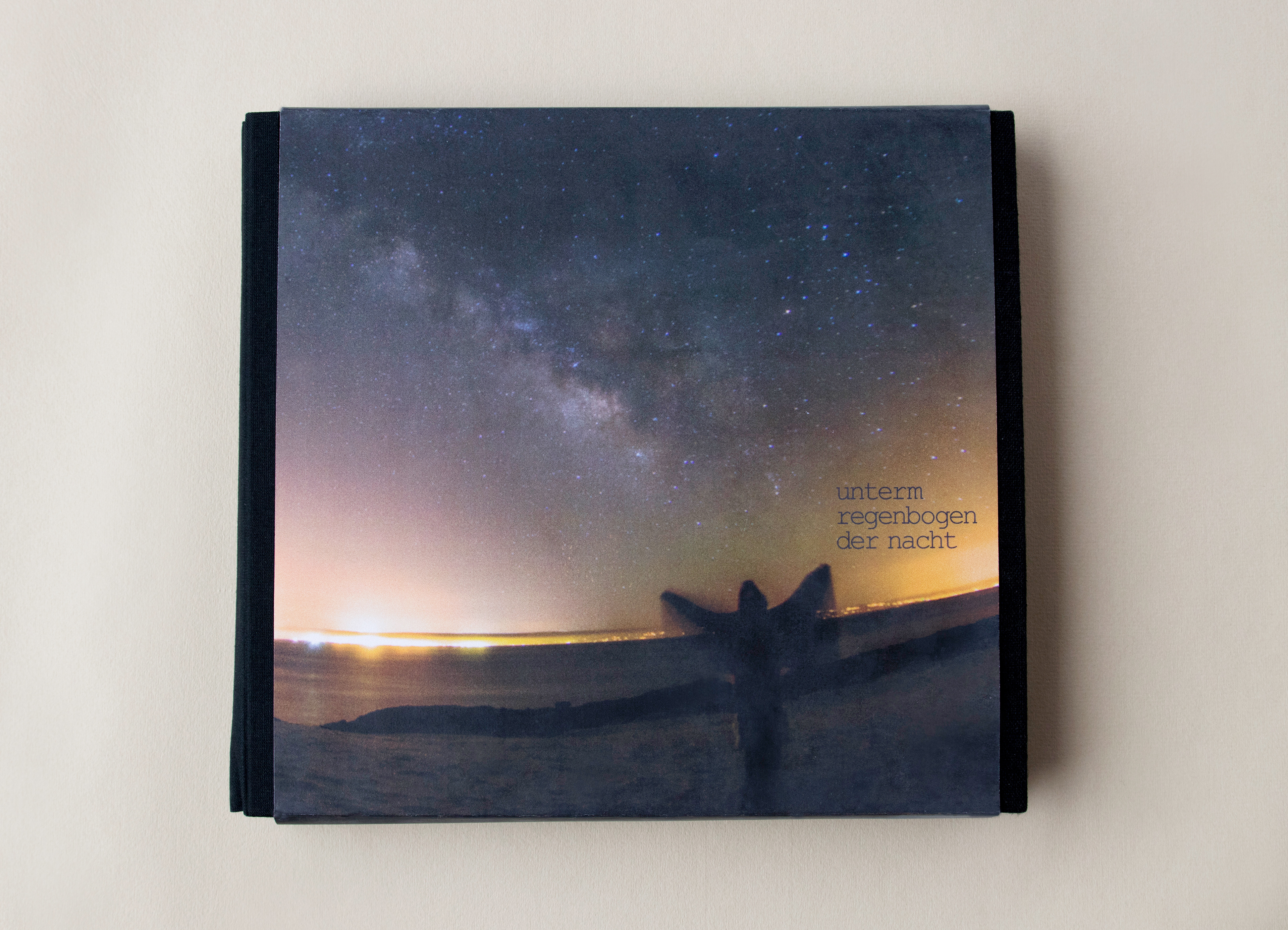 Das Unikatbuch „Unterm Regenbogen der Nacht“ ist ein Fototagebuch über eine Studienreise nach Tarifa in Andalusien und dessen Eindrücke. Das quadratische Buch in der Größe 210x210 mm setzt sich aus drei Bereichen zusammen. Mittig zentrierte Fotografien, sachliche Informationen in Fliesstext und handgeschriebene Texte als persönliche, ergänzende Gedanken verbinden sich zu einer persönlichen Reisereportage.